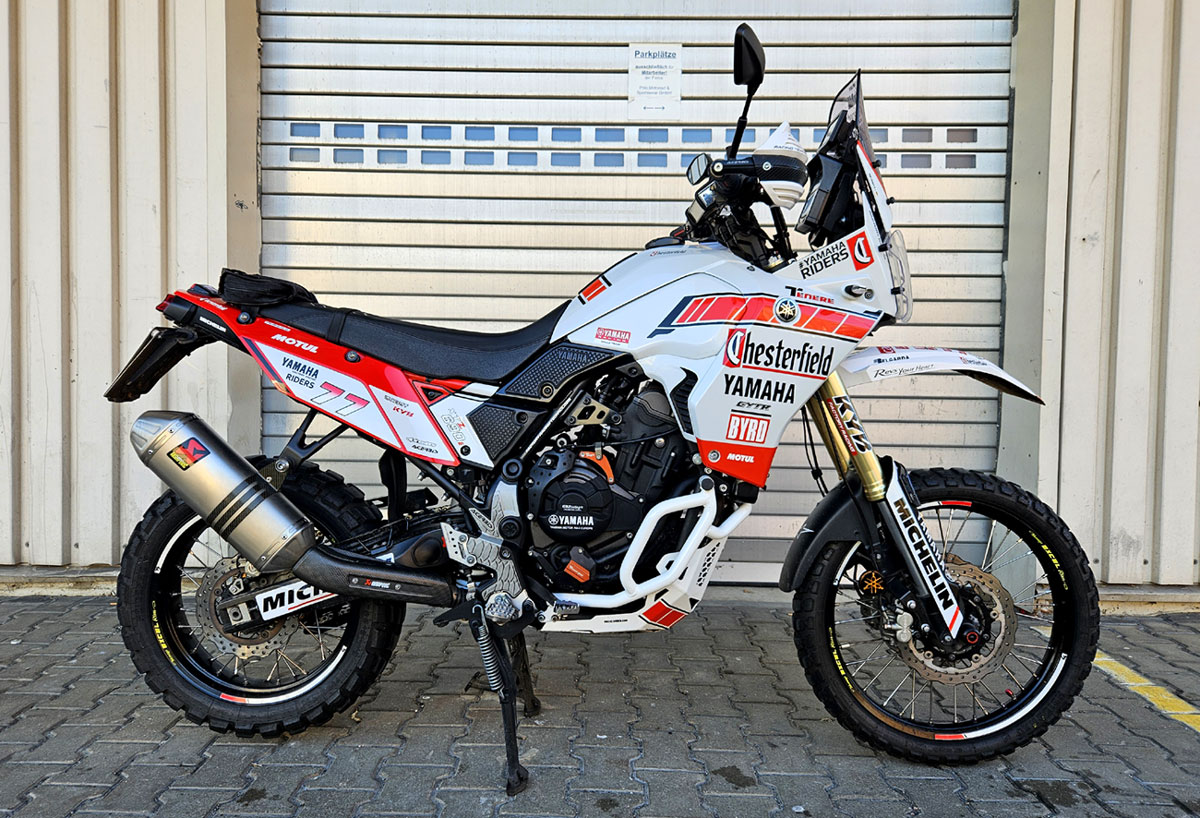 -- Akrapovic Endschalldämpfer Euro 4 - Luftfilterkasten modifiziert für mehr Luft GYTR - K&N Luftfilter - Geändertes Mapping Gemischanfettung (+15) - Zweiteiliger Zieger Motorschutz - Untere Sturzbügel von Zieger - Geänderte Umlenkhebel + 2,5 cm Sitzhöhe - Austauschfeder Federbein 90 Nm - 4 cm höhere einteilige YAMAHA Rallysitzbank - Lenkerstrebe für Roadbook - Lenkererhöhung um 2 cm - ACERBIS X Factor Handprotektoren mit Alubügel - Stahlflexbremsleitung vorne von KEDO - ACERBIS Rahmenschutz - Hoher Rallye Fender in Verbindung mit teilweise tiefen Kotflügel - Hohe Spoilerscheibe von ERMAX - Höhenverstellung für die Scheibe von KEDO - YAMAHA Makrolon Scheinwerferschutz - Kurzer stark modifizierter Kennzeichenträger von T7 Rallye - Raximo Hebel - KTM Kettenschleifschuh unten - OTR Kettenschutz - GYTR Ritzelabdeckung - YAMAHA Offroad Kettenführung unten - Rallye Positionslicht als zusätzliches Bremslicht - Sonderdesign von mir - Aufkleber von TT Kiosk - Andere LED Blinker - Modifizierter Hauptständer von YAMAHA - Bereifung HEIDENAU K60 RANGER - Sitzhöhe an der tiefsten Stelle 96 cm - GARMIN GPS und Roadbook - DID VMX 2 Kette, JT Racing Ritzel, SUPERSPROX Kettenrad - u.v.m Stand 10/ 2025 |